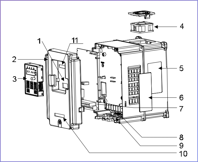 | 6 | Vỏ bên hông | Bảo vệ thiết bị bên trong biến tần |
